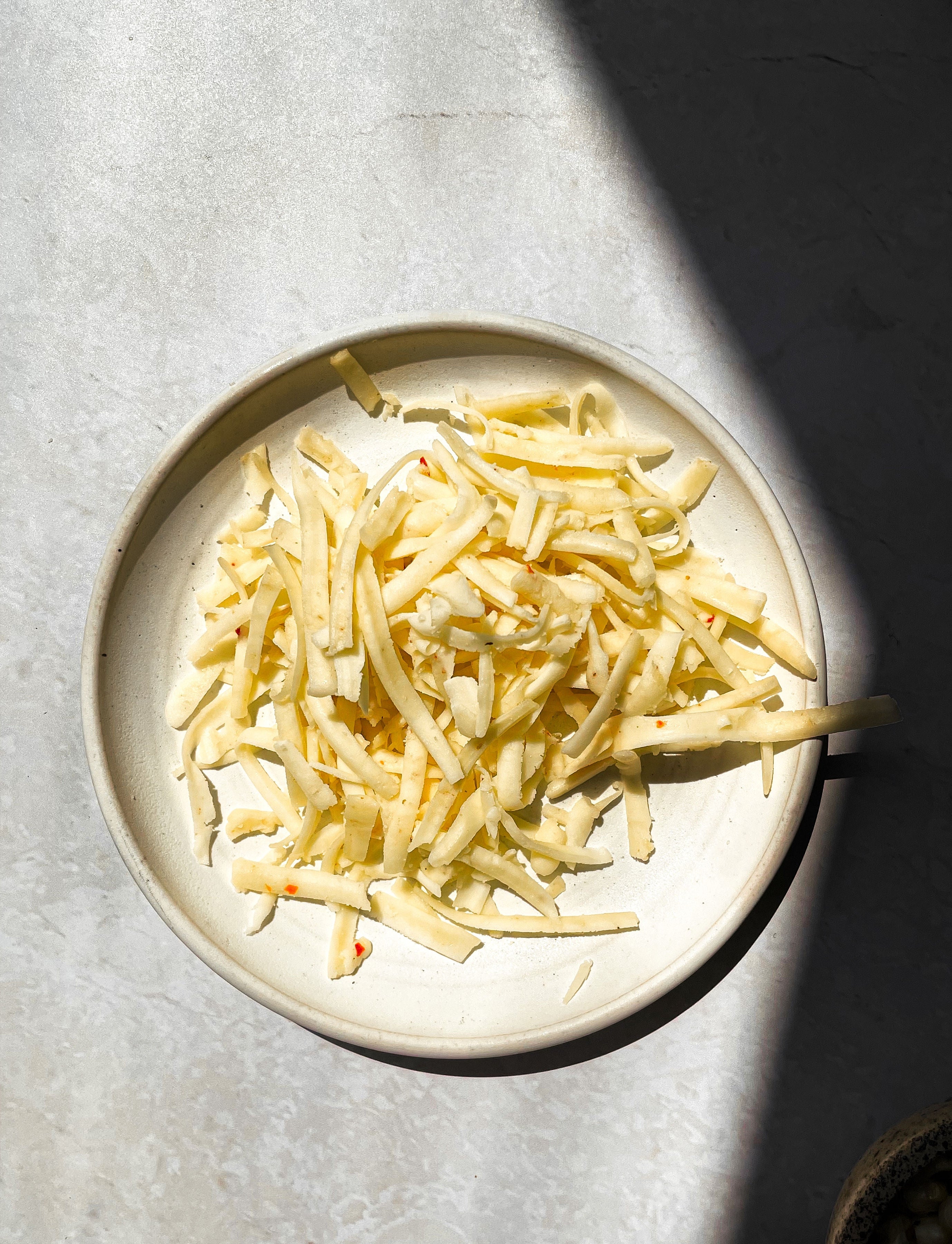Our love for spicy food inspired us to make a spicy habanero version of our paneer. We balance out the heat from the raw habanero peppers with red chili peppers. It’s definitely supposed to be hot, and some great ways to use it are: