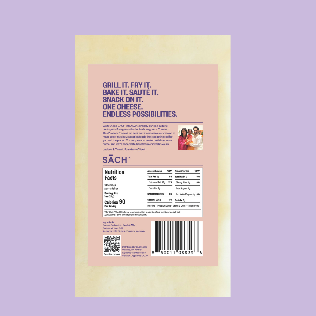 Our Organic 10oz Family Pack of Sach Paneer is made for bigger households, hungrier snackers, and weeknight meals that need to come together fast. Crafted from organic, humanely sourced milk from small farms, this soft, creamy paneer has a neutral flavor that kids and adults love alike.