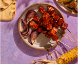 - Preheat the oven to 400 F. Marinate the cubed paneer/protein/veggies with the BBQ sauce, and cook for about 5-7 minutes, turning halfway through.